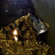 Nach einem misslungenen Versuch meine Treppeninstallation mit Hilfe verschiedener Stoffbahnen aufzubauen, startete ich einen zweiten Anlauf, indem ich eine goldene Rettungsfolie und verschiedenen Farben der Schule verwendete. Für dieses Projekt platzierte ich die Rettungsfolie auf einer Schultreppe und ließ die verschiedenen bunten Farben – wie ein Wasserfall – übereinander die Treppe hinunter laufen. Um eine chaotische Wirkung zu erzielen, zerknüllte ich vorher die Folie und spielte mit den verschiedensten Perspektiven, um meine Vorstellungen bestmöglich umzusetzen.
