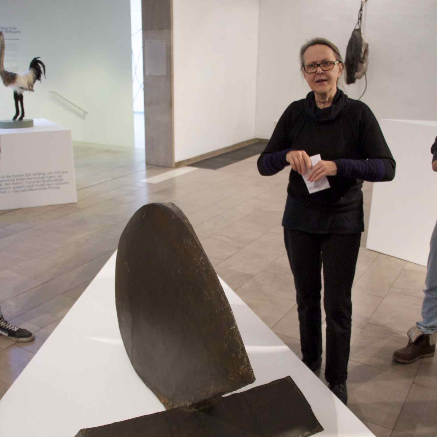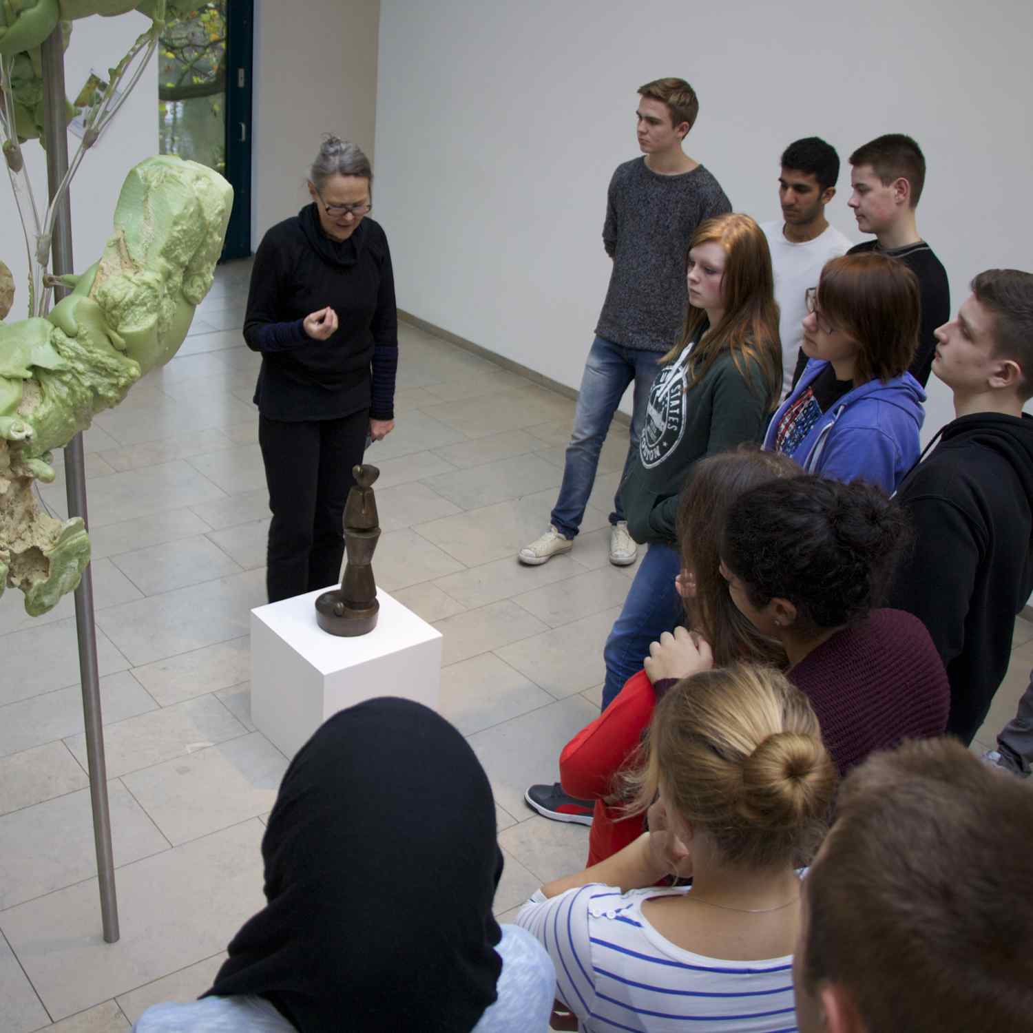 Der Kunstkurs im 11. Jahrgang, der sich zur Zeit mit dem Projekt „Papierkram“ beschäftigt, wurde von Frau Gramse durch die Ausstellung geführt. Frau Gramse vermittelte die unterschiedlichen Ansätze, mit der die Künstler sich mit Natur/Formen der Natur/Prinzipien der Natur auseinandergesetzt haben. Frau Gramse wies auf das Konzept hin, einige „klassische“ Werke (Arp, Max Ernst) mit aktuellen Kunstwerken zu konfrontieren.