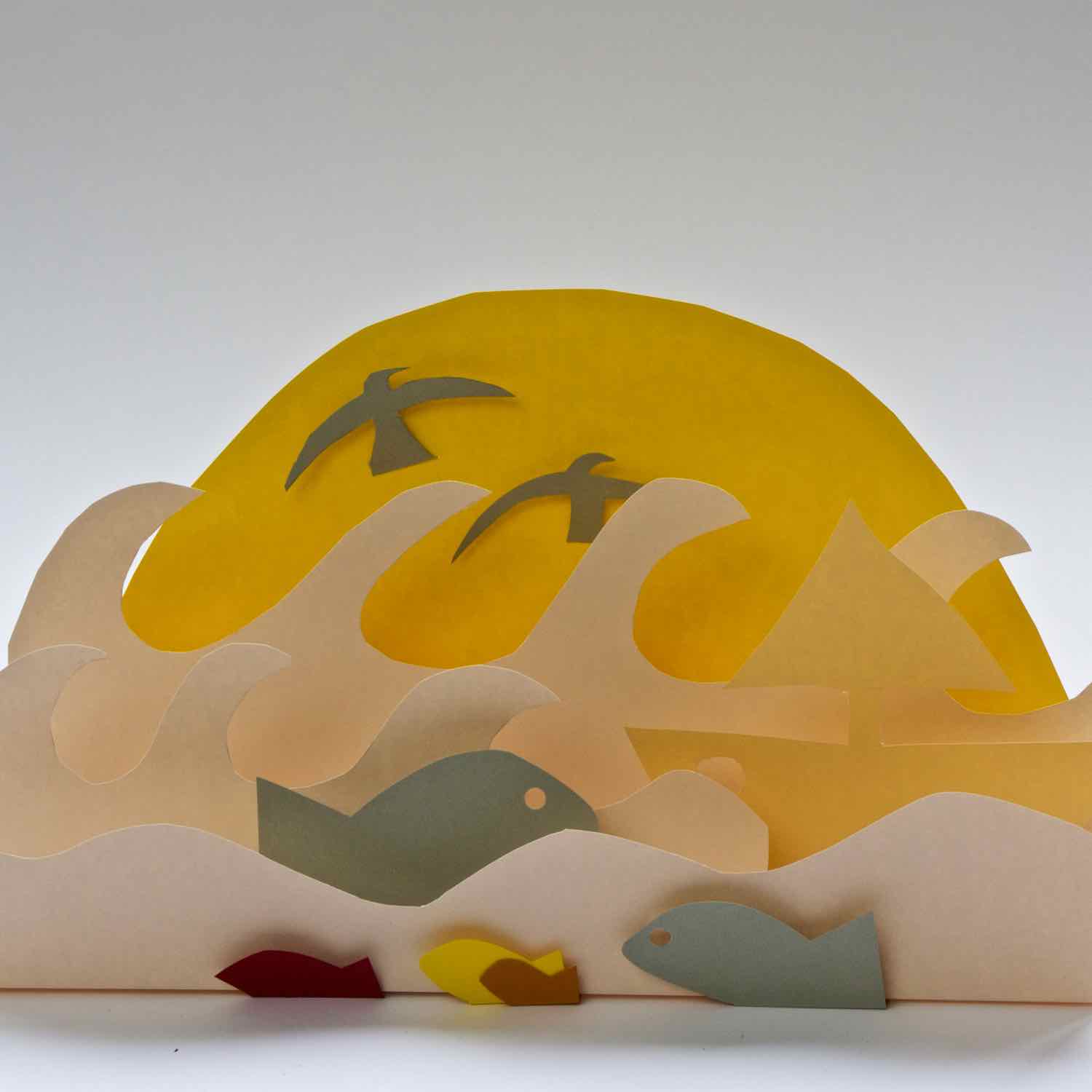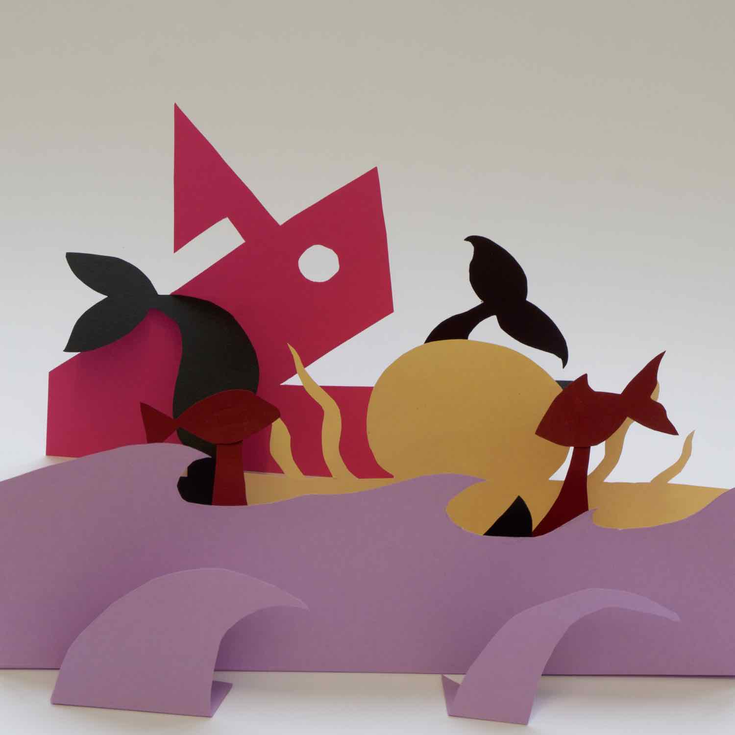 Der neue 11er-Grundkurs Kunst tauchte in das grosse, Jahrgangs-übergreifende Thema „Wasser“ ein. Aufgabe war mit 5 Bögen farbigen Karton ein kleines Papiertheater, nur mit Schere, ohne Zeichnen, ohne Klebstoff, innerhalb von 100 Minuten herzustellen und zu fotografieren. Ein paar elegante und ein paar skurrile Lösungen der Aufgabe werden hier präsentiert. Manche habe allerdings geschummelt und doch etwas hineingezeichnet.