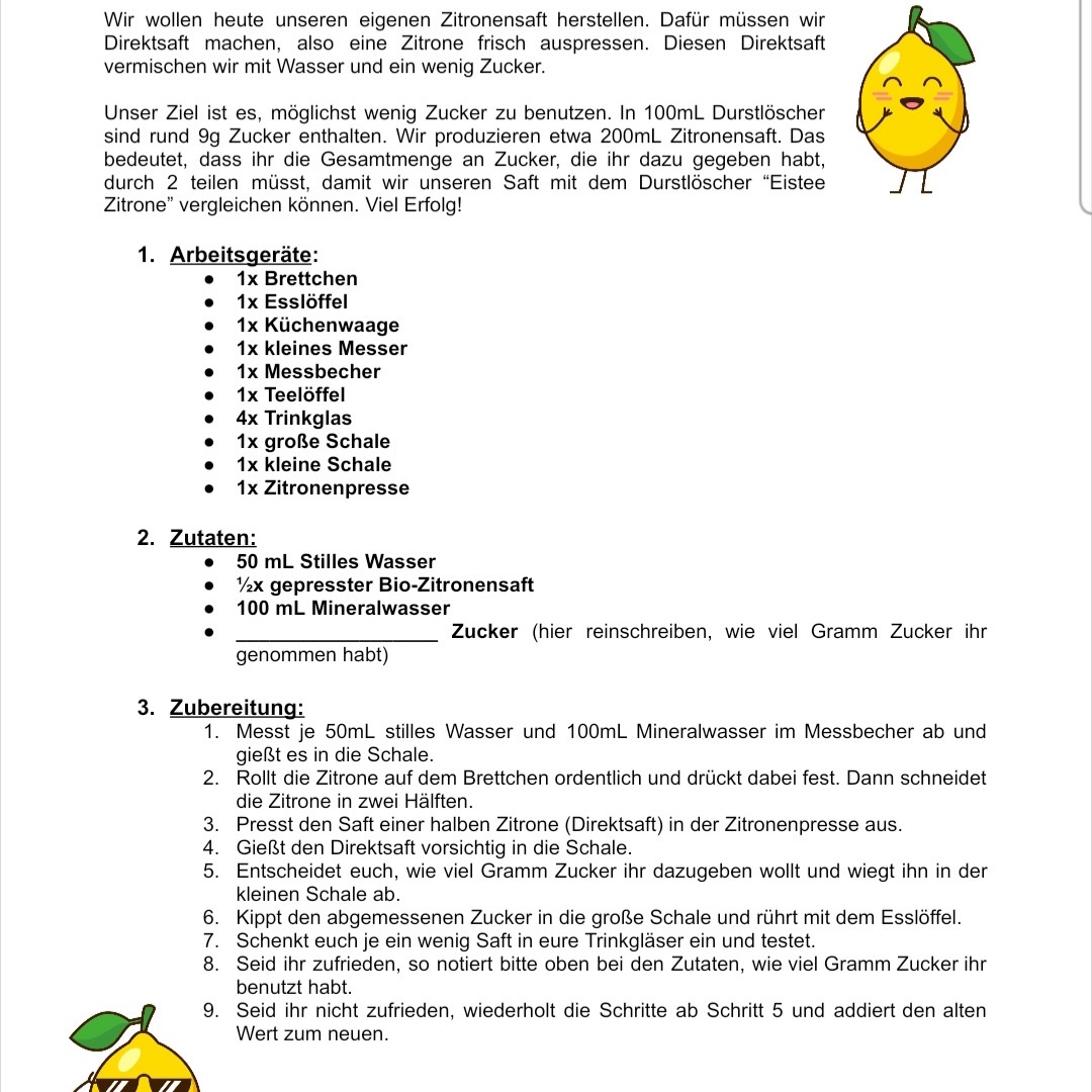 Nicht wirklich Kunstunterricht, gehört aber zu dem „Durstlöscher Projekt, das im vollen Gange ist. Die 6.7 stellt eine alternative Limonade 🥤 aus echt natürlichen Bestandteilen her. Die 6.3 hat dann getestet und war wohl recht angetan. Rezept am Ende der Foto Reihe.