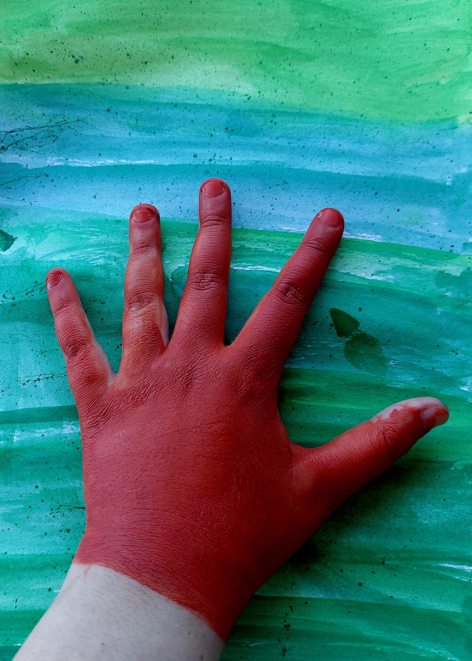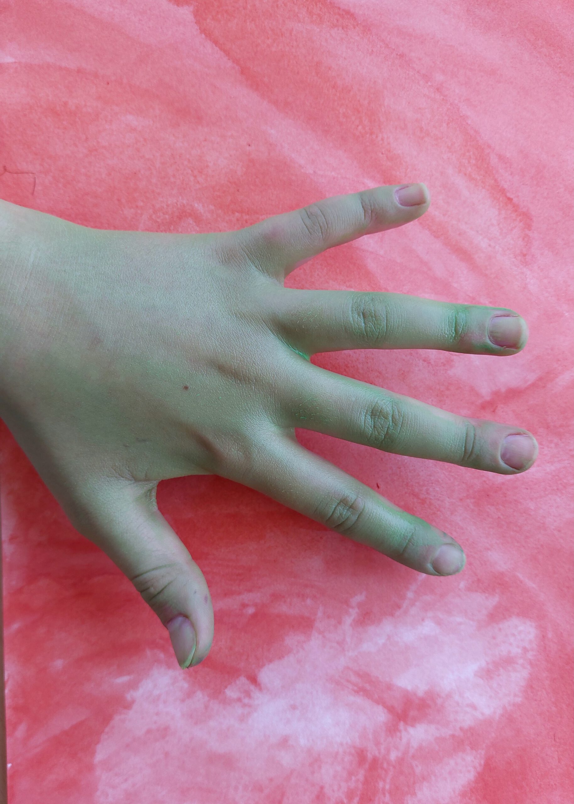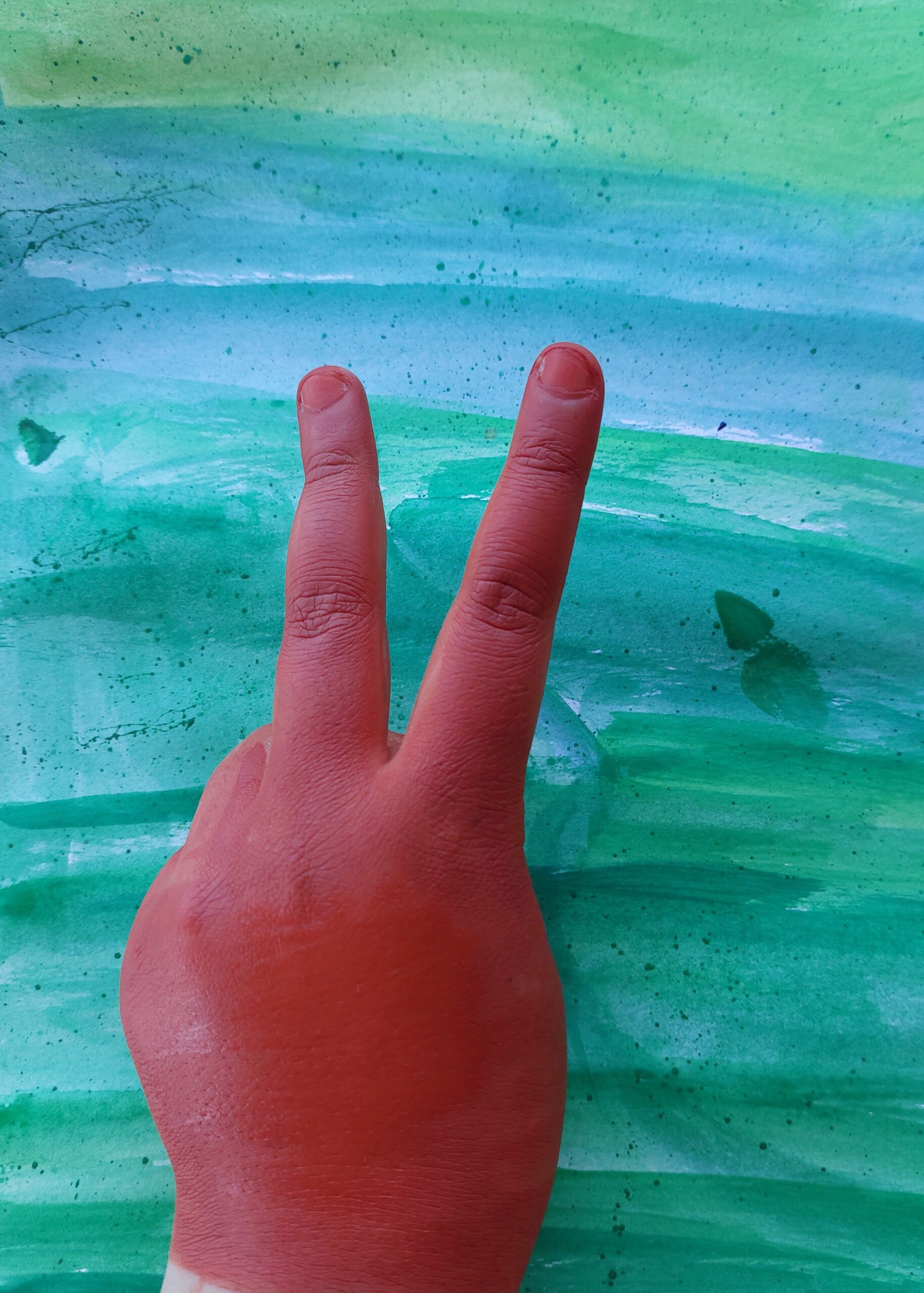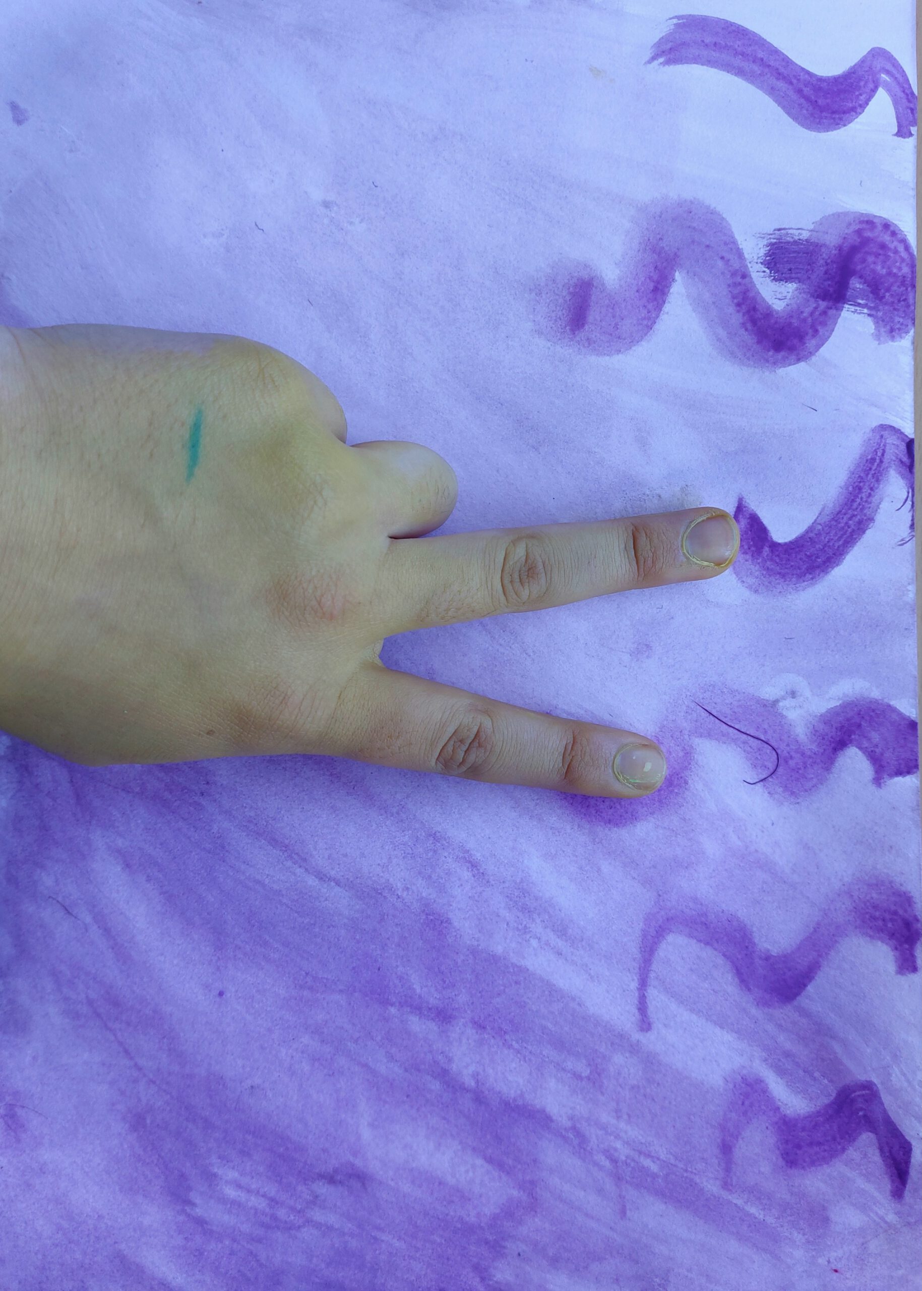 Fingerzeig, farbig Schreibe eine Antwort Fingerübungen aus der Kunstklasse 5.2., Thema Komplementärfarben.