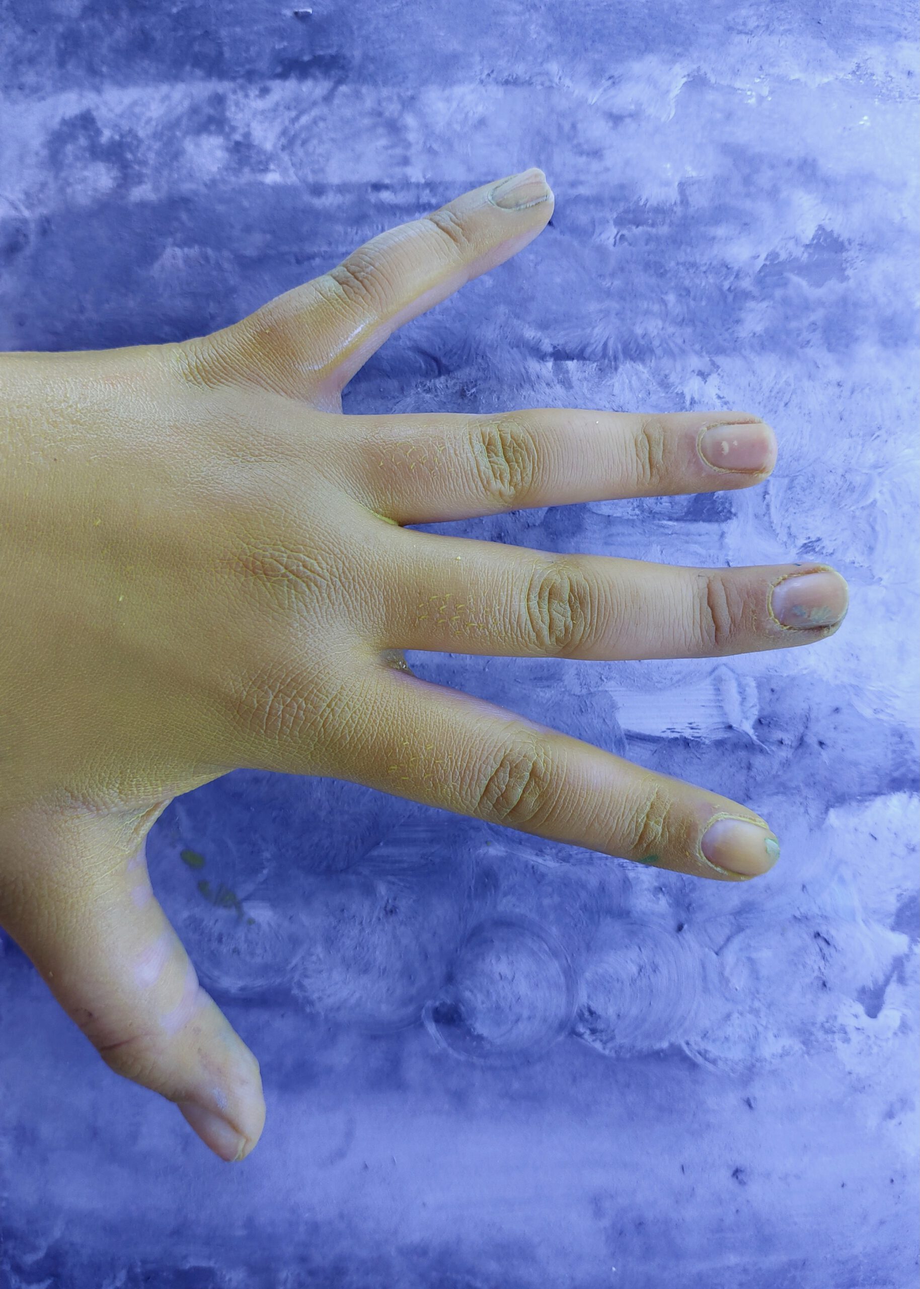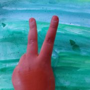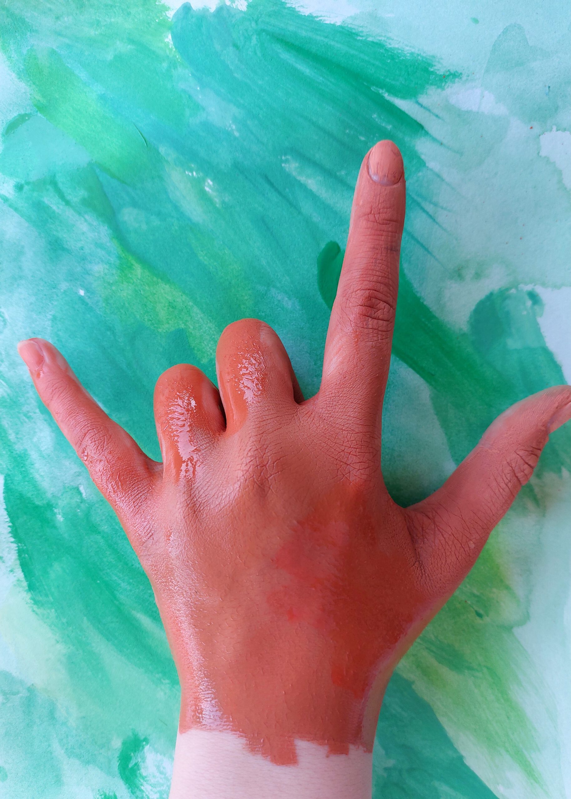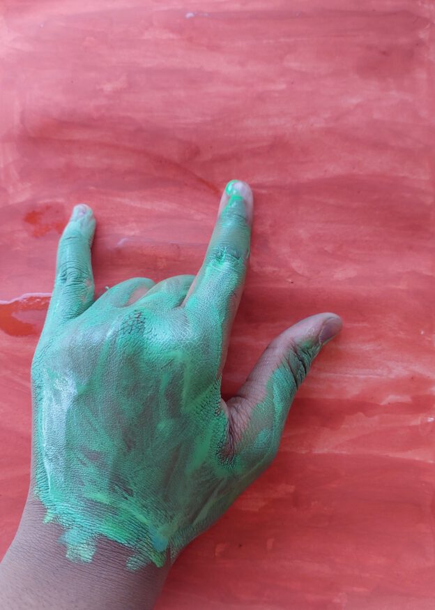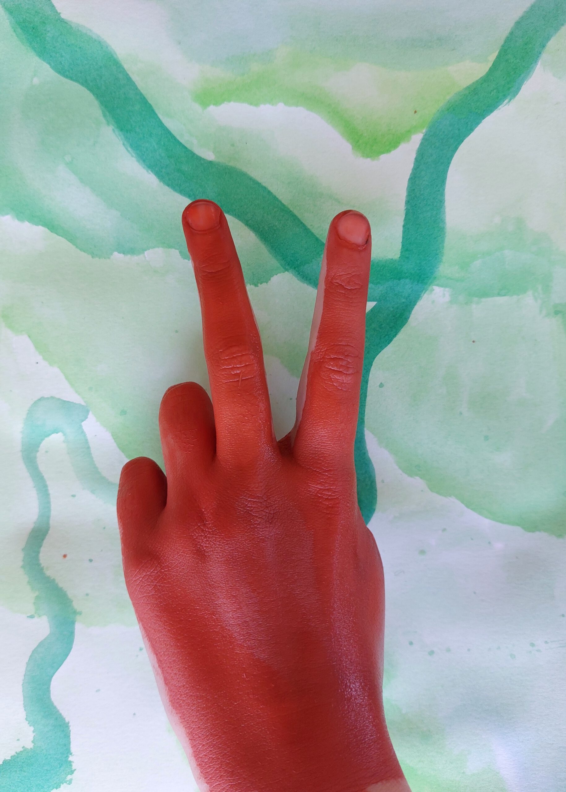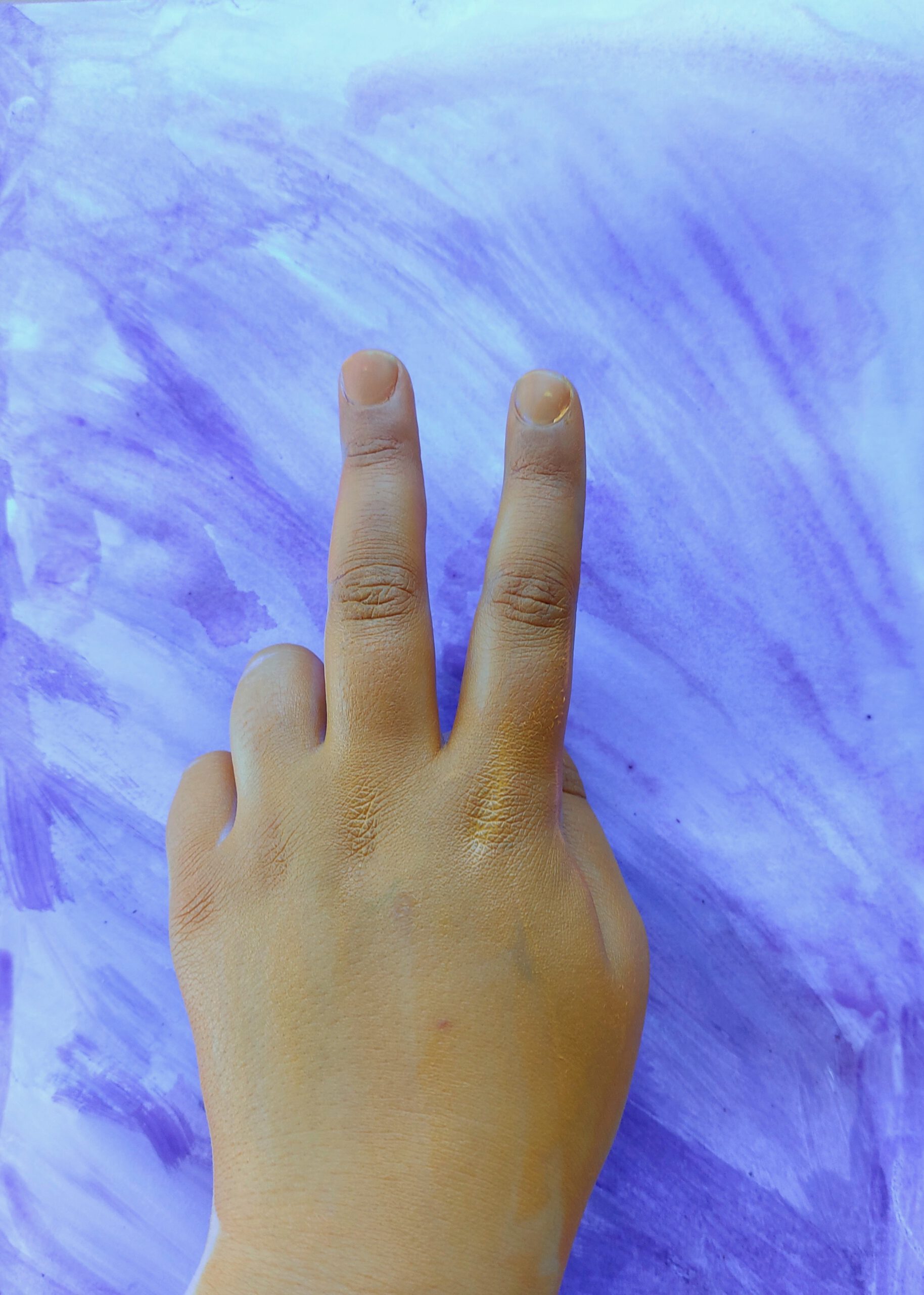 Fingerzeig, farbig Schreibe eine Antwort Fingerübungen aus der Kunstklasse 5.2., Thema Komplementärfarben.