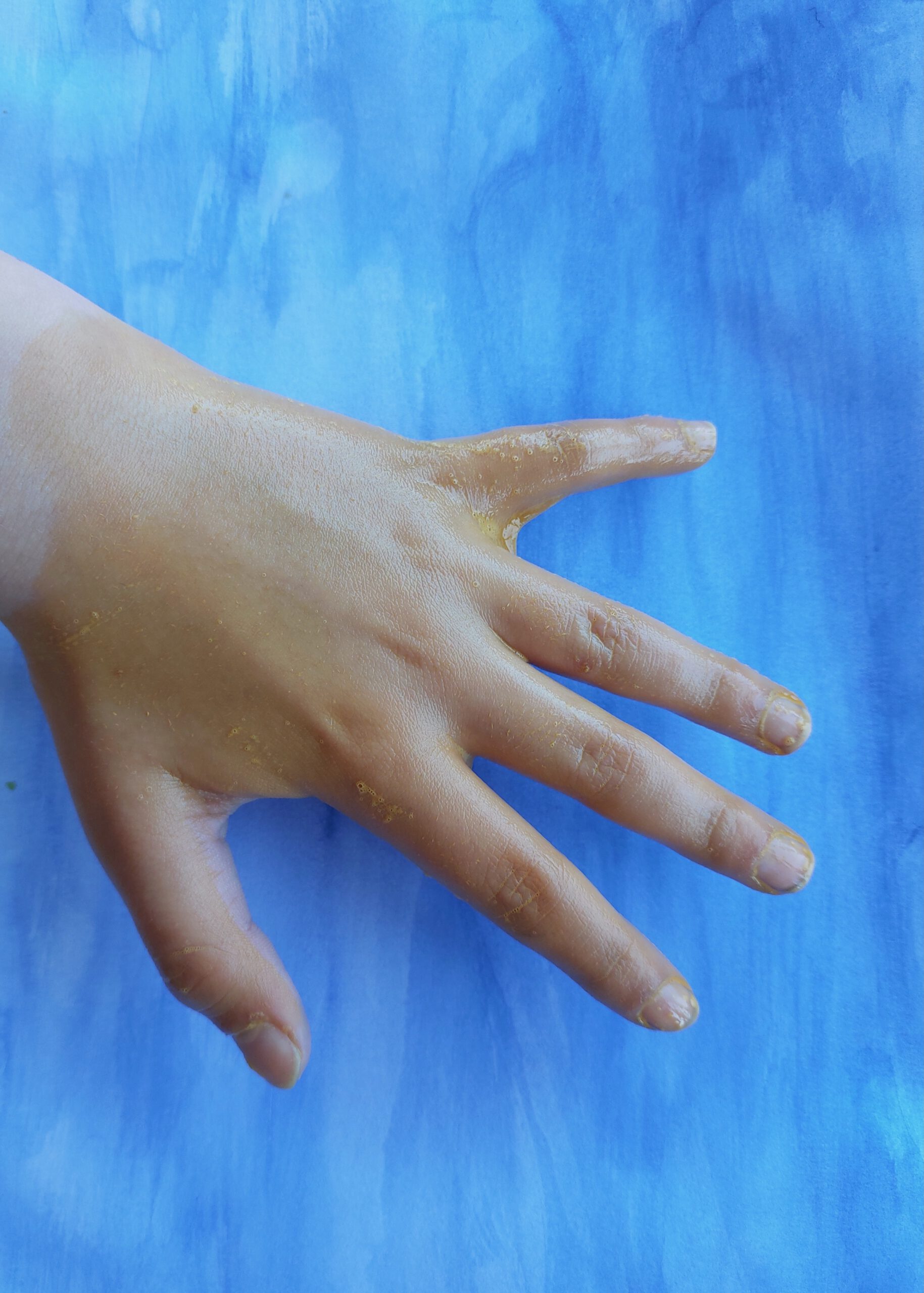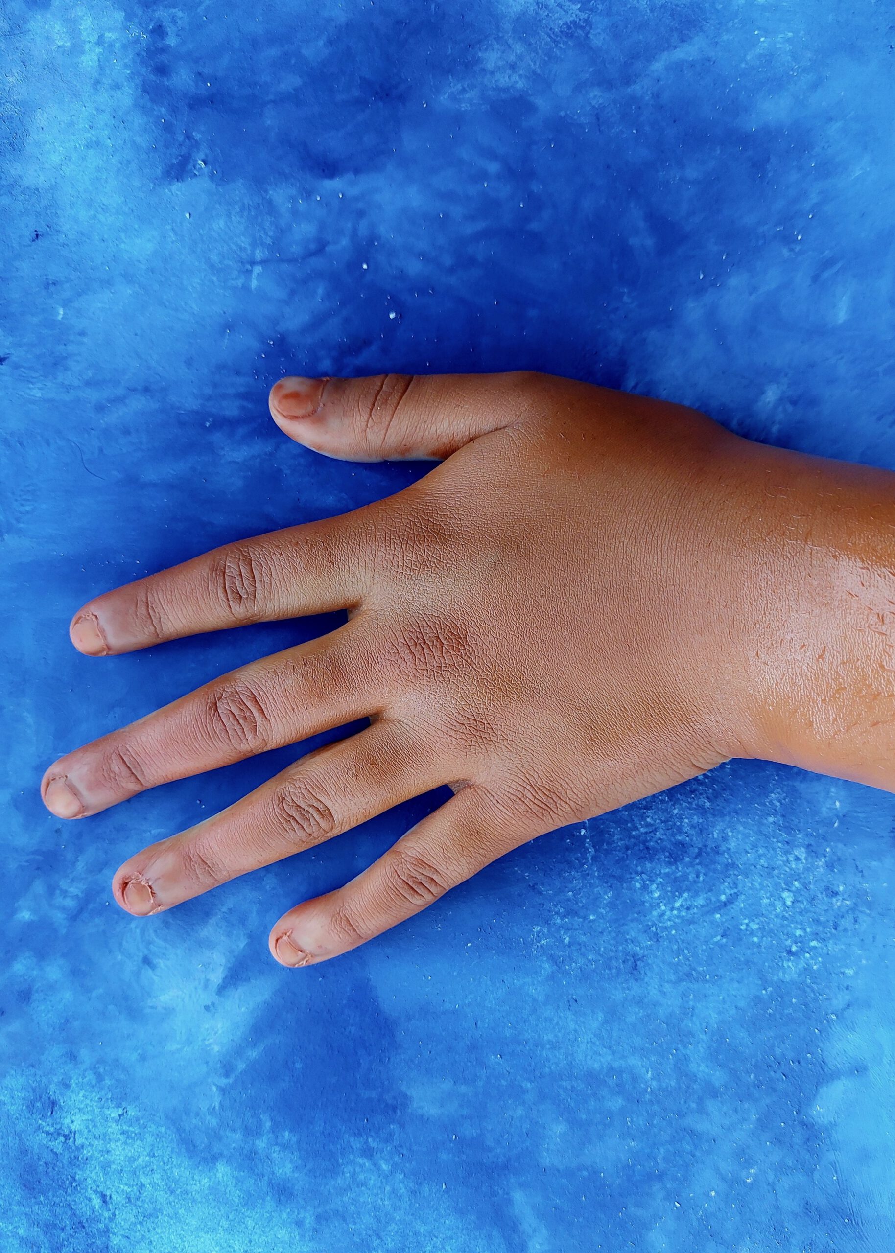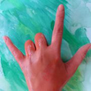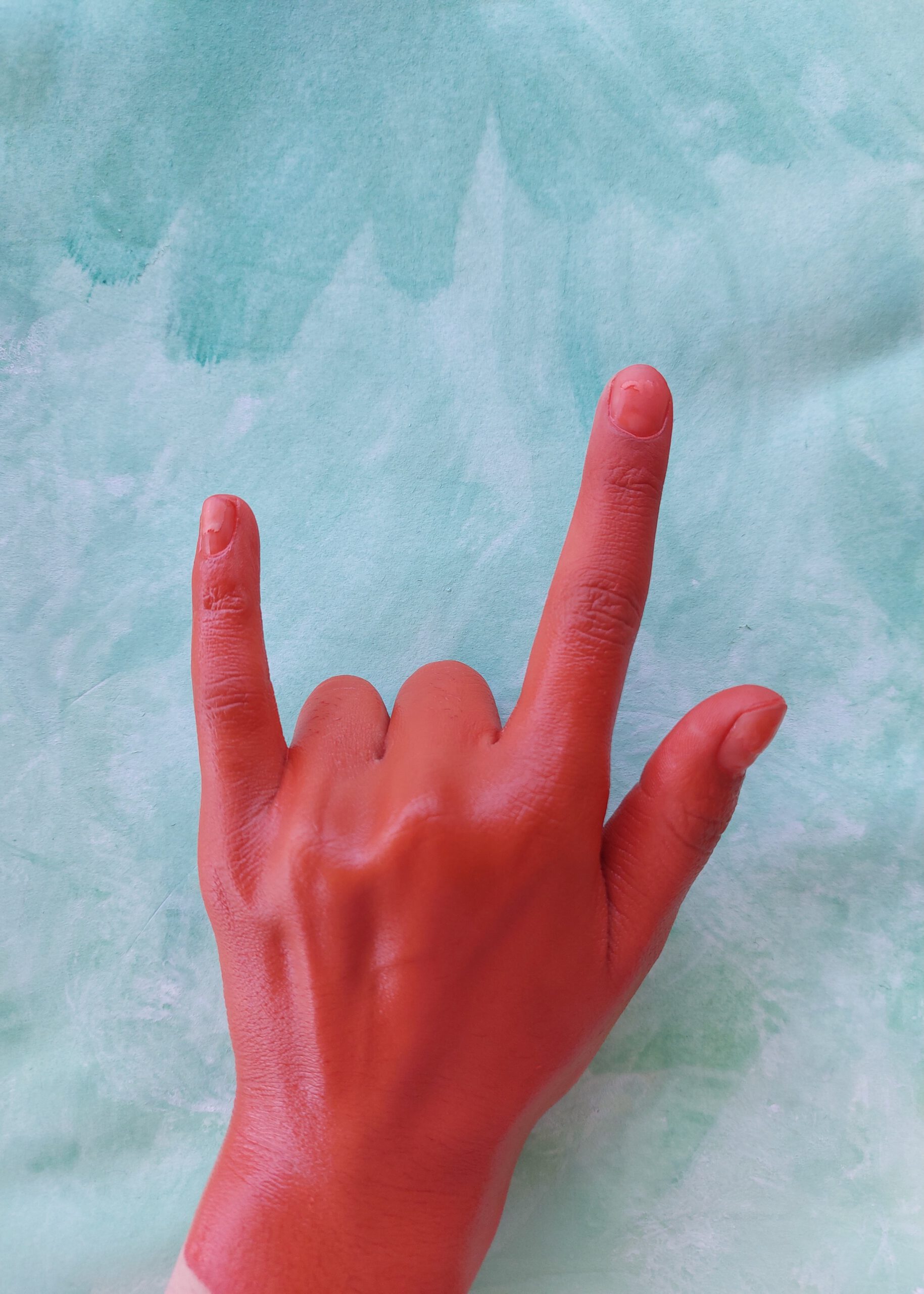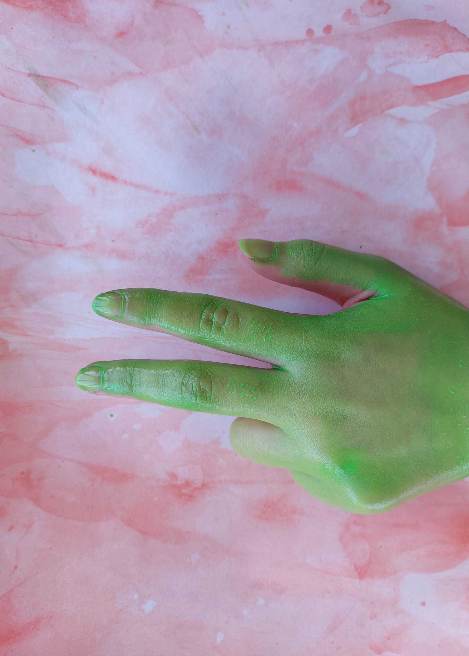 Fingerzeig, farbig Schreibe eine Antwort Fingerübungen aus der Kunstklasse 5.2., Thema Komplementärfarben.